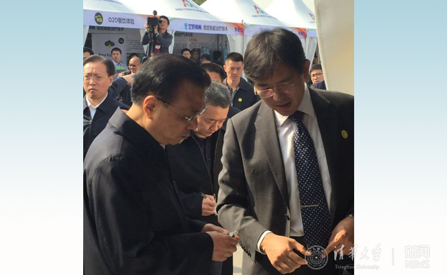 2015年10月举行的“双创周”,李克强总理视察清华脑起搏器展台