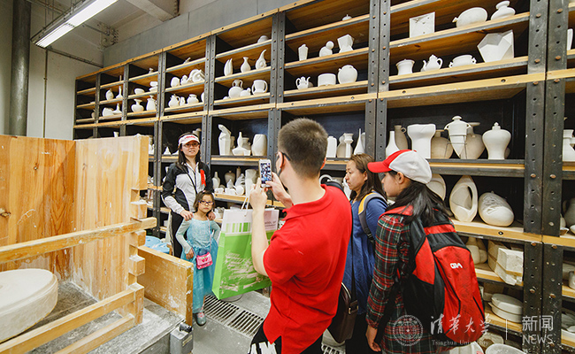 访客参观美术学院的陶瓷艺术。