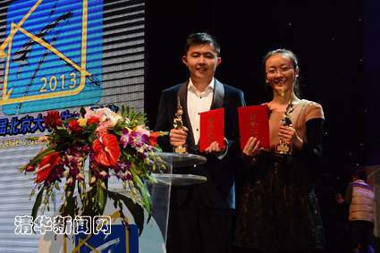 图为最佳男演员奖获得者梁植与优秀女演员奖获得者蔡丹阳。 赖泽祺