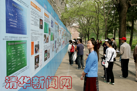 4月29日下午,校领导顾秉林、陈希、王大中、贺美英、何建坤、庄丽君、张再兴、龚克、胡和平等来到展区,兴致勃勃地参观了展览,并与展览的主创人员合影留念。