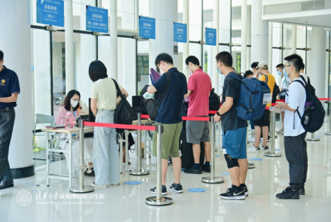 为使新生们更加方便快捷地办理各项报到手续,同时进一步保障疫情防控期间迎新工作有序高效地开展,深圳国际研究生院采用“数字化迎新”模式,进行线上签署住宿协议以及线上住宿费缴纳,并从以往的移动端H5架构升级为微信小程序架构。同学们在入学前通过“SIGS迎新”微信小程序,根据指引提前完成了信息填报、入校申请等手续。同时,在新生入口处增设了3台“电子哨兵”核验核酸检测信息。